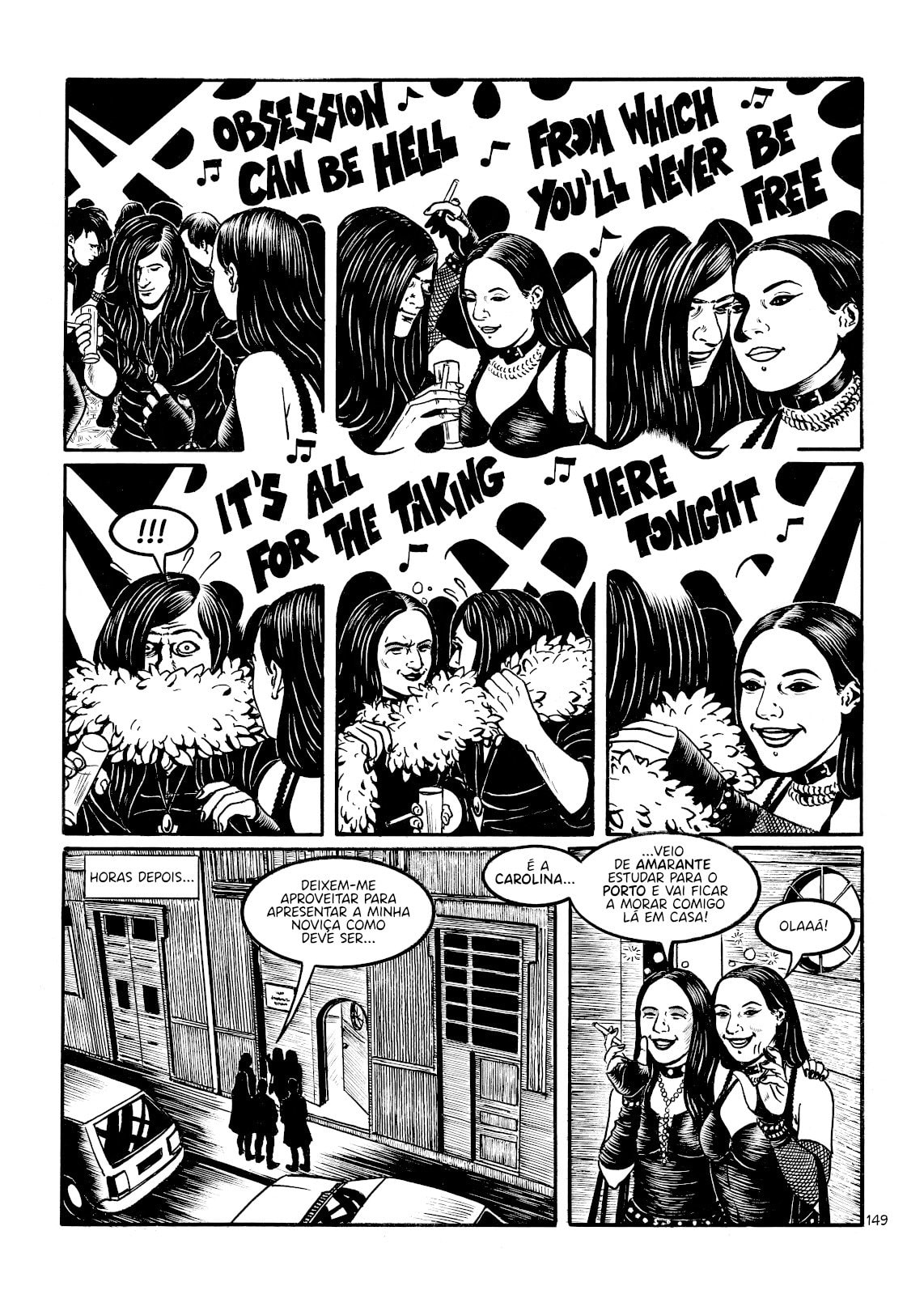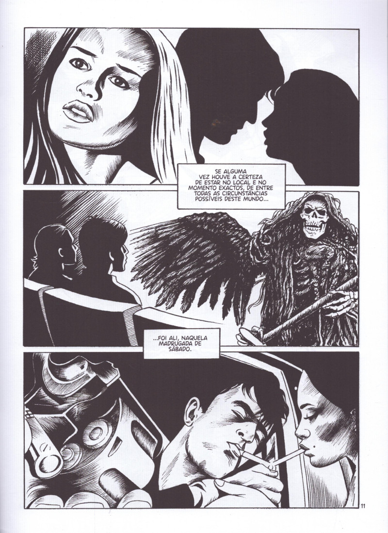 Companheiros da Penumbra é um livro gigantesco que marca o regresso de Nunsky à Banda Desenhada, desta vez, em modo de memória flutuante para relatar um período específico de uma tribo específica no Porto. Falamos da cena Gótica dos anos 90 em envolvia sobretudo as festas no Heaven’s.