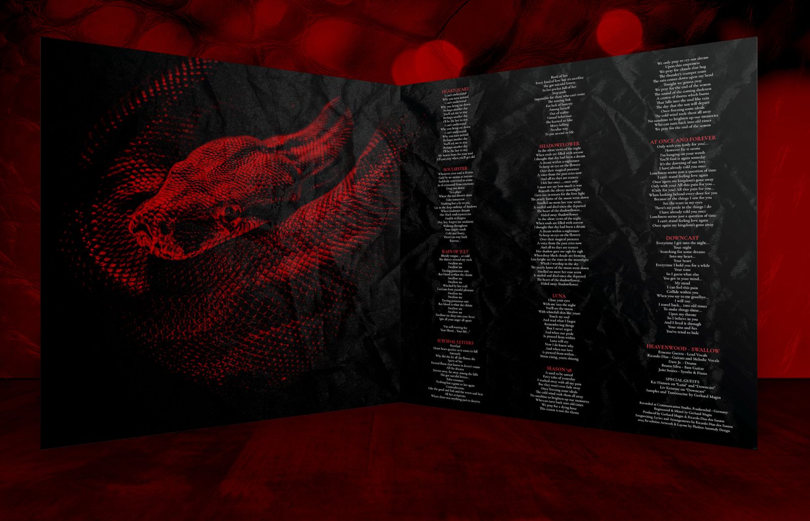 ‘Swallow’ was originally released in 1998, featuring guest appearances from Liv Kristine [Theatre of Tragedy] and Kai Hansen [Gamma Ray / Helloween]. That same year, Heavenwood made history as the first Portuguese metal act to perform at the legendary Wacken Open Air Festival, playing to an expansive crowd of fans from around the world. Following this milestone, the band embarked on extensive European tours alongside acts such as Atrocity, Solitude Aeturnus, and Saviour Machine.